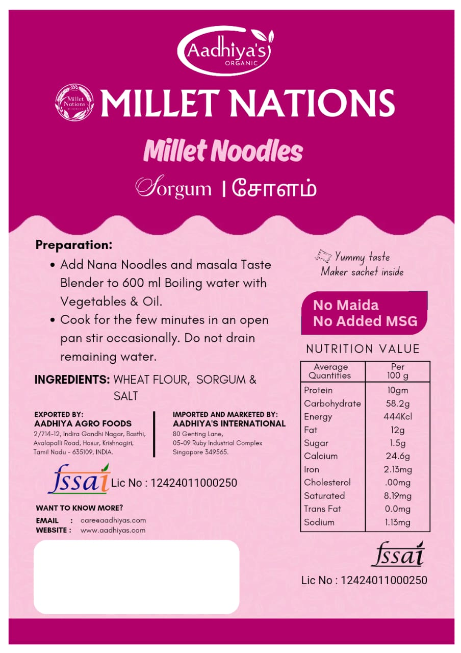 Aadhiya's Jowar Millet Noodles are a nutritious and flavorful alternative to traditional noodles. Made from jowar millet, they are gluten-free and packed with dietary fiber, making them a healthy choice for your meals. Their unique texture holds sauces beautifully, enhancing your favorite dishes. Quick to prepare and versatile, these noodles fit seamlessly into any cuisine. Elevate your dining experience with Aadhiya's Jowar Millet Noodles for a healthful twist on noodle dishes.